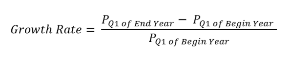 The calculation of growth rate is based on the quarterly averaged close price, denoted as P, and is calculated in each CEO’s tenure.